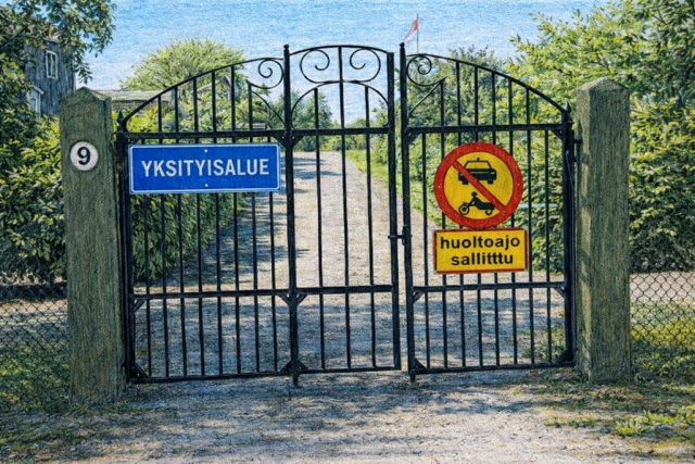 Haluamme pitää puutarha-alueemme vapaana autoista. Autolla ajaminen aidatun alueen sisäpuolelle on sallittua vain huoltoliikenteelle ja liikkumisesteisille invatunnuksella. Tavaroiden viemiseksi mökeille on yhteismajalta lainattavissa erilaisia tavarakärryjä.